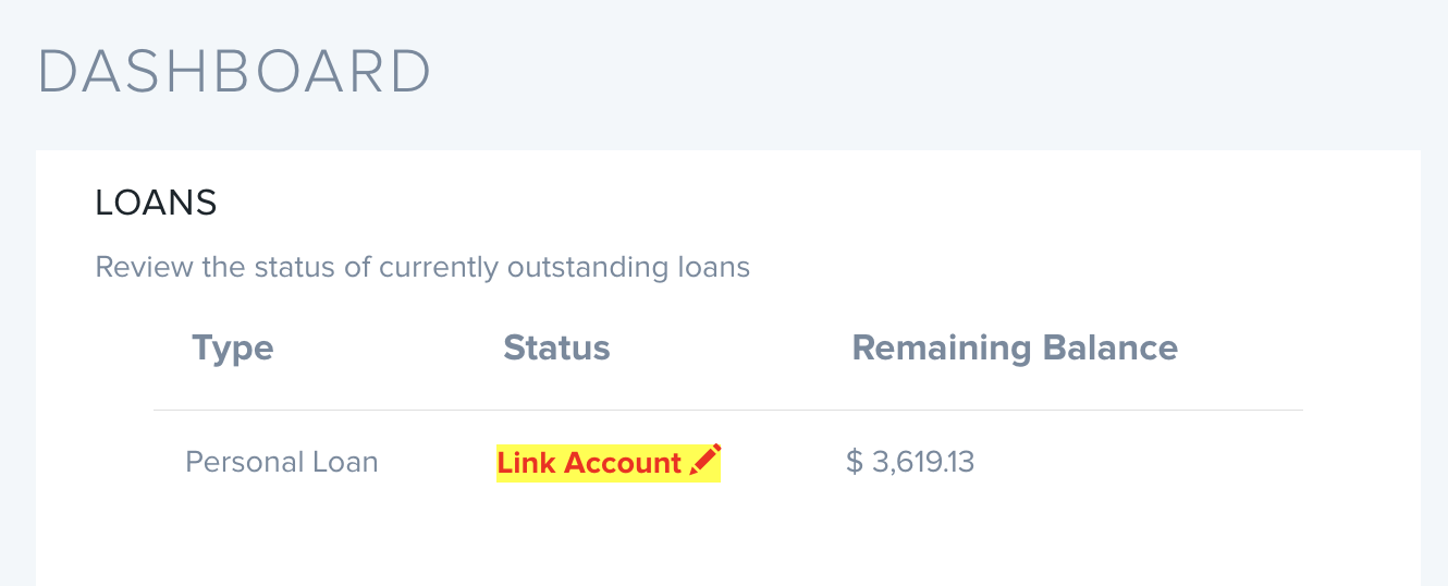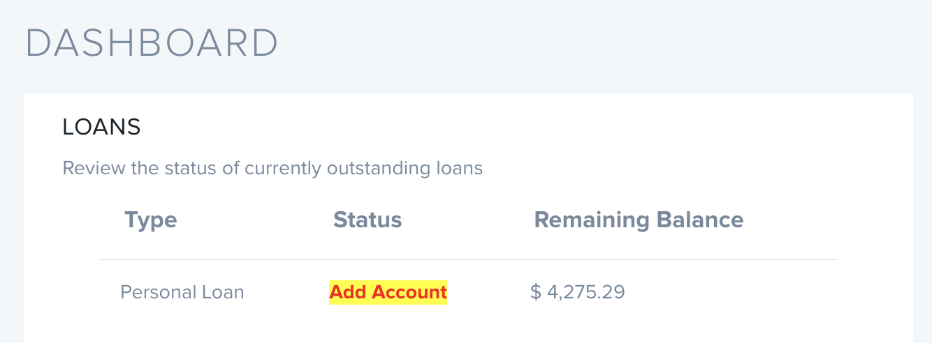 When an error flag of "Link Account" or "Add Account" appears on your Dashboard and Loans page, you should have also received an email with one of the following headings: "Payment Transfer Cannot Be Made from Designated Account" or "Funding Source Removed on Happy Mango". Besides this article, the emails provide specific instructions on how to rectify these errors.